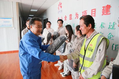 慰问期间,景建民还到施工现场看望了正在紧张作业的职工们,勉励大家在严格落实防疫措施、确保工程安全的前提下,盯住时间节点,加快建设进度。在项目现场的座谈会上,景建民与11位项目人员进行了沟通交流,希望他们继续弘扬“三线精神”,艰苦奋斗,无私奉献,用踏实的工作作风确保项目早日高质量建成投入运行。