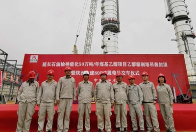 乙醇精制塔顺利封顶,为项目建设吹响了进入安装高峰期的号角,项目组将借助“百天攻坚大会战”的氛围,集团队之智慧,通过各参建单位的共同努力,高标准完成2021年年度目标,确保项目按期中交。(通讯员/黄耀辉 摄/高学峰)