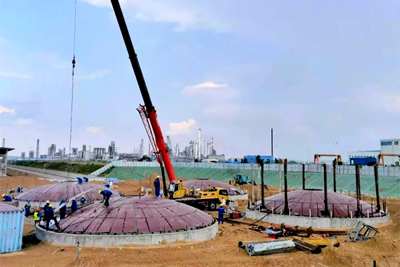 7月14日,由公司承建的榆林炼油厂进口原油铁路专用线接卸及配套设施改造项目4台渣油罐组基础完成基础工序交接验收程序,4台原油罐基础先行于7月11日完成基础工序交接,自此,该项目储罐全面进入安装阶段,并且8台储罐壁板、防腐油漆材料已全部到货,壁板防腐完成,全面具备安装条件。