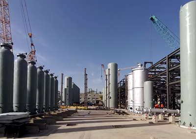 TSA/PSA成套包设备共35台,主要设备有吸附塔、缓冲罐,此单元用于提纯合成气中的CO和H2,用压缩机增压后送入甲醇和乙醇装置作为原料气使用。