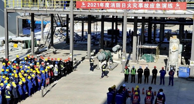 为切实做好项目的消防安全工作,确保冬季施工平稳有序推进,近日,乐竞网页版入口总承包的榆神能化50万吨/年煤基乙醇项目现场举办了“2021年度消防日火灾事故应急演练”。项目参建各方代表200余人参加了本次演练。
