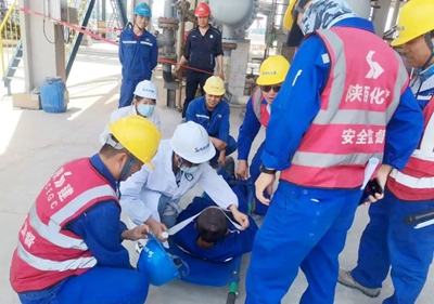 培训结束后,现场举行了火灾消防演练。此次演练以项目现场发生火灾为背景,火情发生后,现场各组纷纷启动,抢险救援进入火场用灭火器配合现场救援,救护组迅速赶往事发地点对受伤人员进行转移抢救及送医,在大家团结协作下,演练取得圆满成功。