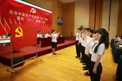 大会在雄壮的国歌声中拉开序幕,参会人员着装整齐,佩戴党员徽章,庄严肃立。在公司党委副书记、总经理田伟同志的带领下,预备党员高举右手,紧握拳头,庄严宣誓,立下自己对党忠诚的誓言,表达了为党的事业奋斗终身的决心和愿望。