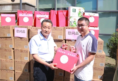 公司党委副书记、工会主席景建民为职工送上牛奶、月饼、扶贫产品等慰问物资,感谢每位员工一直以来的辛勤付出。