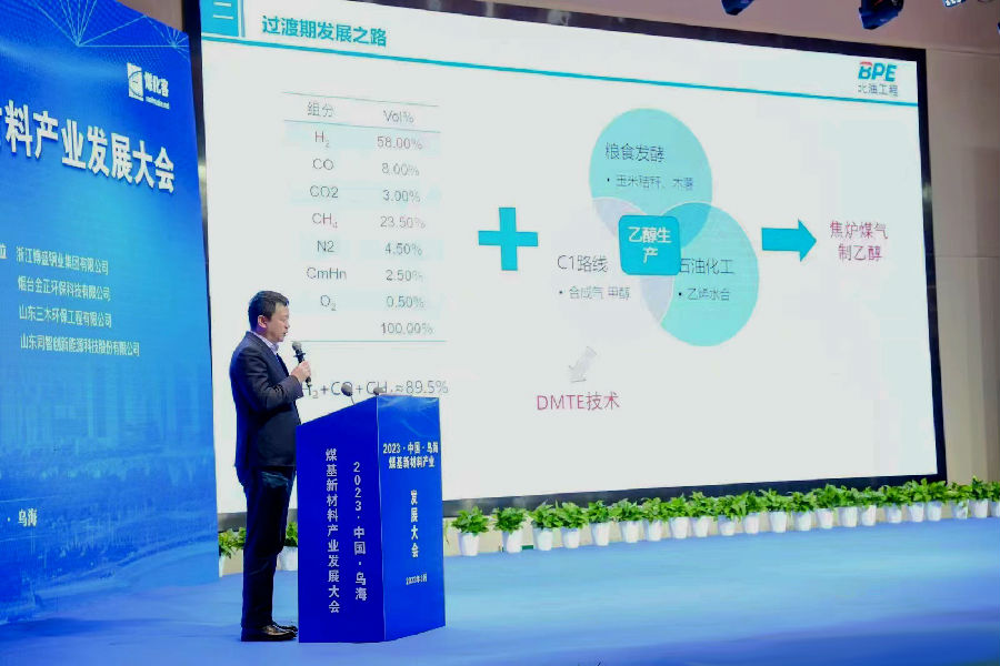 北油工程副总经理刘戈作为嘉宾以“从传统焦化迈向新能源”为主题展开演讲。目前煤化工产业的整体发展主要集中在甲醇、乙二醇等传统领域,有发展煤基乙醇的潜在优势。刘戈提出,煤化工高质量发展之路,要以焦炉尾气制乙醇为媒介生产乙烯、醋酸乙烯、EVA、走向光伏领域,环氧乙烷、碳酸酯电池电解液,进入电池新能源行业。
