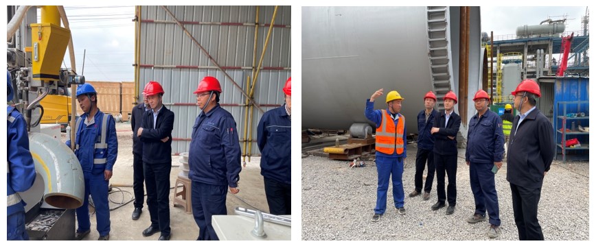 许缄涛还分别前往设备预制场、管道自动焊预制场,对最后一台反应器的制造进程、组装塔器“穿衣戴帽”进程、管道预制自动焊等工作进行调研。
