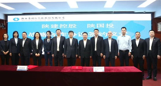 4月17日,陕建控股集团与陕西省国际信托股份有限公司签署战略合作协议。集团总经理毛继东,陕国投党委书记、董事长姚卫东,党委副书记解志炯等领导见签。陕建股份财务总监杨耿和陕国投市场总监孙西燕代表双方签约。