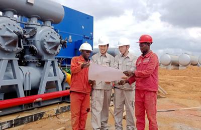 国庆期间,由乐竞网页版入口西安分公司负责设计的刚果(布)KAYO油田伴生气回收利用项目建设正忙,现场机器轰鸣,一线工人各司其职,相互协作,有条不紊。