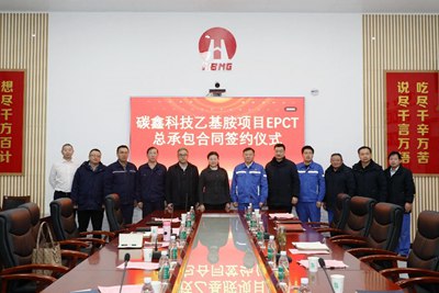 1月30日,安徽碳鑫科技有限公司年产3万吨乙基胺项目合同签约仪式在安徽淮北举行。碳鑫科技党委书记、董事长张平,党委副书记、总经理李伟,乐竞网页版入口(简称:北油工程)党委副书记、总经理田伟出席签约仪式。