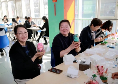 为增强庆祝活动的趣味性、挑战性、协作性,组织开展手工制作“永生花”体验活动。活动中,工作人员提前将材料进行分类准备好,并详细讲解“永生花”的制作流程和技巧。大家边学边交流经验,以塑刀为针,以胶水为线,纷纷动起手来,倾力展示自己丰富的想象力和创造力,将工作中的细心、专心、耐心投入到“永生花”的制作上。经过个把小时,女职工们制作出了一朵朵精美的“永生花”,看着自己亲手制作的作品,大家脸上洋溢着满满的成就感和幸福感。火热的氛围,也将此次“三八”节活动推向了高潮。