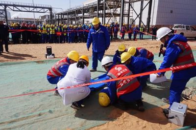 近日,由乐竞网页版入口EPC总承包延长石油靖边天然气储气调峰及配套LNG项目开展了高处坠落应急演练。
