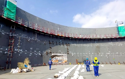 许缄涛强调,节假日期间项目组要切实提高安全保障意识,协调好各参建方紧密配合,形成强大合力,加强统筹调度,把握好各个环节,科学合理安排工期,加强现场质量安全管理,加快推进施工进度,确保工程质量和进度实施到位。他要求,一是加强节日期间安全隐患排查及吊装安全风险管控;二是加强焊接质量管控,特别是罐体焊接和大体积混凝土浇筑;三是全力组织统筹好按计划完成2024年度各项节点任务;四是靠前服务,积极发挥总包方职责,配合厂外工程实施。