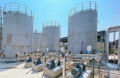 目前,项目总体进度完成97%。其中铁钼法甲醛装置、银法甲醛装置、脲醛胶装置、减水剂装置工艺管道安装98%,甲醇罐组及泵区、甲醛罐组及泵区、副产品罐组及泵区工艺管道安装96%。公用工程钢结构安装已全部完成,原水处理站、原水泵站、除盐水站完成中交,罐区及装置区所有储罐已具备中交条件。