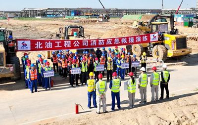 近日,由乐竞网页版入口EPC总承包的陕西延长石油榆林凯越煤化有限责任公司50万吨/年甲醇制乙醇项目开展动火作业消防应急演练。业主方、项目各参建方代表观摩了此次演练。