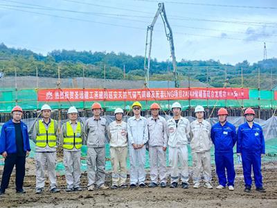 此次浇筑工程,两台储罐基础混凝土总量超过1万立方米。为确保节点任务高质量完成,项目部统筹规划,每日召开问题对接会,与业主及各参建单位协调沟通,紧密配合,扫除各项困难。科学管理,规范施工,狠抓现场安全文明施工,严格执行质量管理规定,确保了施工的质量、工期和安全。