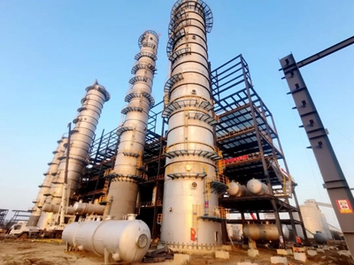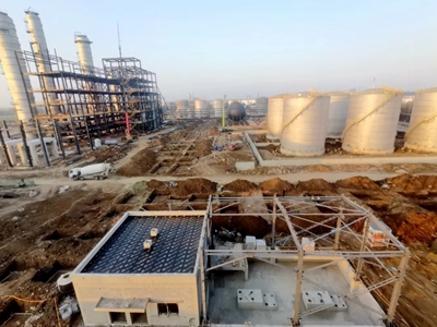 目前,项目整体建设完成64%,装置钢结构安装完成85%,静设备累计安装81台,全厂工艺热力管网基础及钢结构施工完成68%,除盐水站、灌装立体库基础施工中。