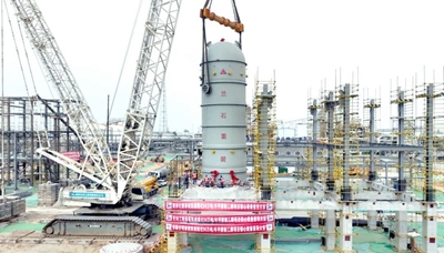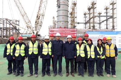 乙酸甲酯加氢反应器是该项目乙醇装置的核心设备,最大直径达5.7米,重621吨。该设备承担着乙醇生产的核心任务,对控制反应条件、提升乙醇生产率以及优化工艺经济性具有重要作用。截至目前,项目乙醇装置整体设计已完成91.09%,采购进度达41.67%,核心设备陆续开始吊装,土建工程多个关键节点也已顺利完成。下一步,项目部将抢抓项目建设安装的“黄金期”,高质量、高标准推进各项工作,确保项目既定目标如期实现。(通讯员/王超 摄/王超)