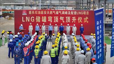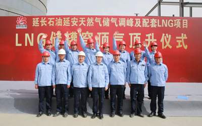 5月7日,由乐竞网页版入口(简称“北油工程”)总承包的延长石油延安天然气储气调峰及配套LNG项目取得重大进展——两座5万立方米液化天然气(LNG)储罐顺利完成“双罐同步穹顶气顶升”关键工序。标志着项目主体结构建设全面完成,正式转入内罐安装阶段,为项目后续投产运营奠定了坚实基础。