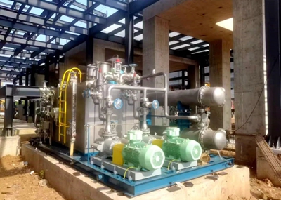 近日,由乐竞网页版入口总承包的山东新泰远望园区德普产业园年产20万吨碳酸二甲酯项目核心设备——4台/套热泵机组吊装工作圆满完成,为后续工艺管道施工创造了有利条件。